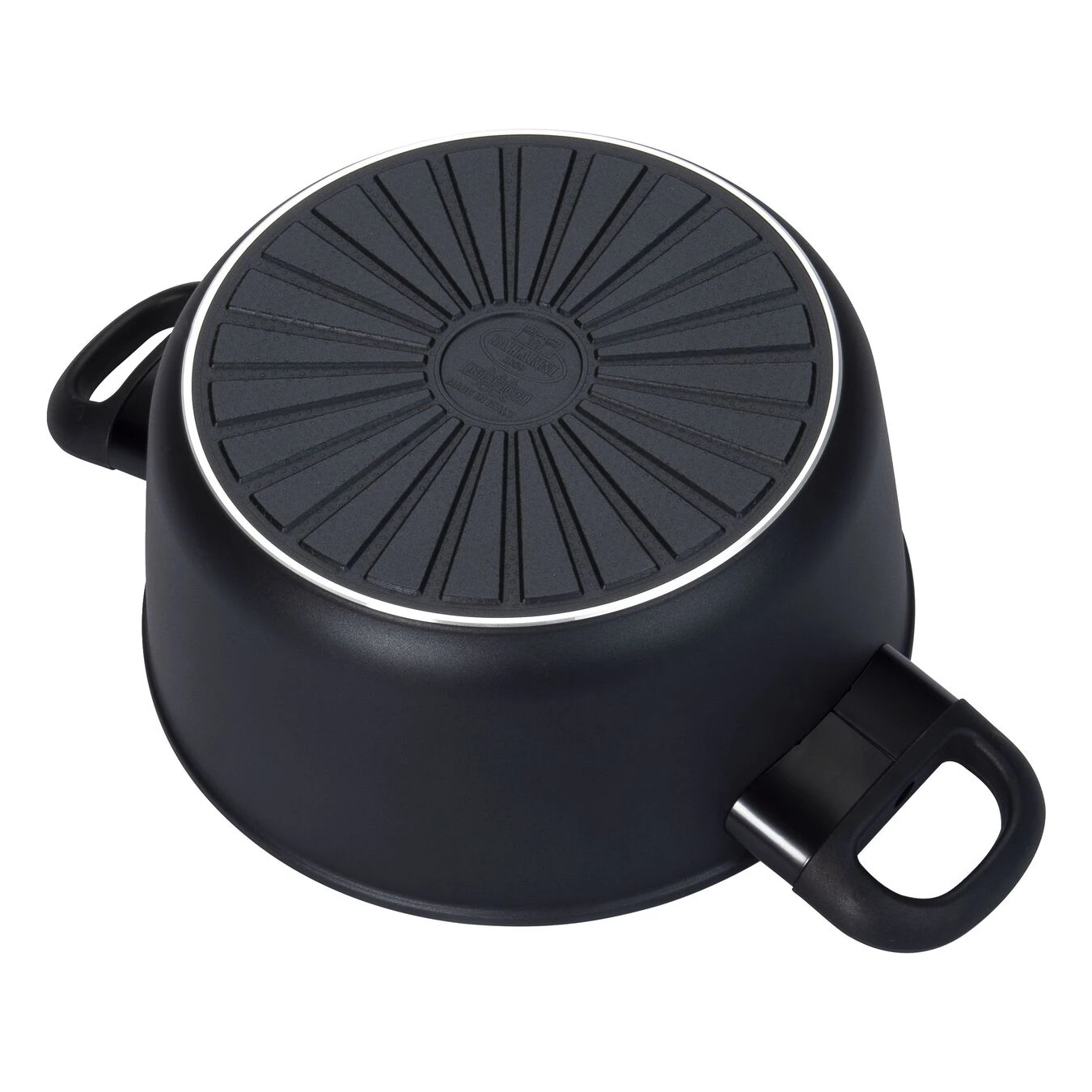 Sei pronto a scatenare la tua fantasia con questa Casseruola? 24 cm. di diametro e un utilissimo coperchio in vetro: la scelta perfetta per cuocere zuppe, purè, sughi, riso, pasta, ma anche dessert come Creme Caramel e budini per accontentare i tuoi ospiti! Il RIVESTIMENTO ANTIADERENTE KERAVIS EXTREME a 3 strati rinforzato con Particelle Ceramiche garantisce un’Ottima Resistenza al Graffio e una Eccellente Resistenza alla abrasione, ed è testato per PFOA, Nickel e Metalli pesanti. Le maniglie sono impugnabile su piano cottura in tutta sicurezza e senza presine, resistono in forno fino a 160°, e sono state disegnate dallo Studio Matteo Thun & Antonio Rodriguez. Il Fondo induzione RADIANT brevettato per il massimo rendimento termico offre una Eccellente Stabilità e rende questo articolo adatto a tutte le fonti di calore. Il bordo è rinforzato per una maggiore resistenza a colpi e cadute e in più è anche SALVAGOCCIA. Elegante e bella da portare in tavola, non la lascerai piu! Grazie a questo articolo potrai cucinare in modo SALUTARE con pochi oli o grassi. Il Rivestimento esterno è ad alta Resistenza termica, per una lunga durata estetica del prodotto. Anche la pulizia è semplicissima: può andare in lavastoviglie, ma grazie al suo rivestimento antiaderente può anche essere lavata facilmente a mano. La linea AVOLA è ideale per tutte le preparazioni. Seguendo le istruzioni uso allegate all’articolo è garantita una Eccellente durata nel tempo. Grazie al coperchio in vetro hai il grado di umidità che desideri nelle tue preparazioni, e puoi seguire in qualsiasi momento la cottura senza scoperchiare! Prodotto Made in Italy con 5 anni di garanzia.
