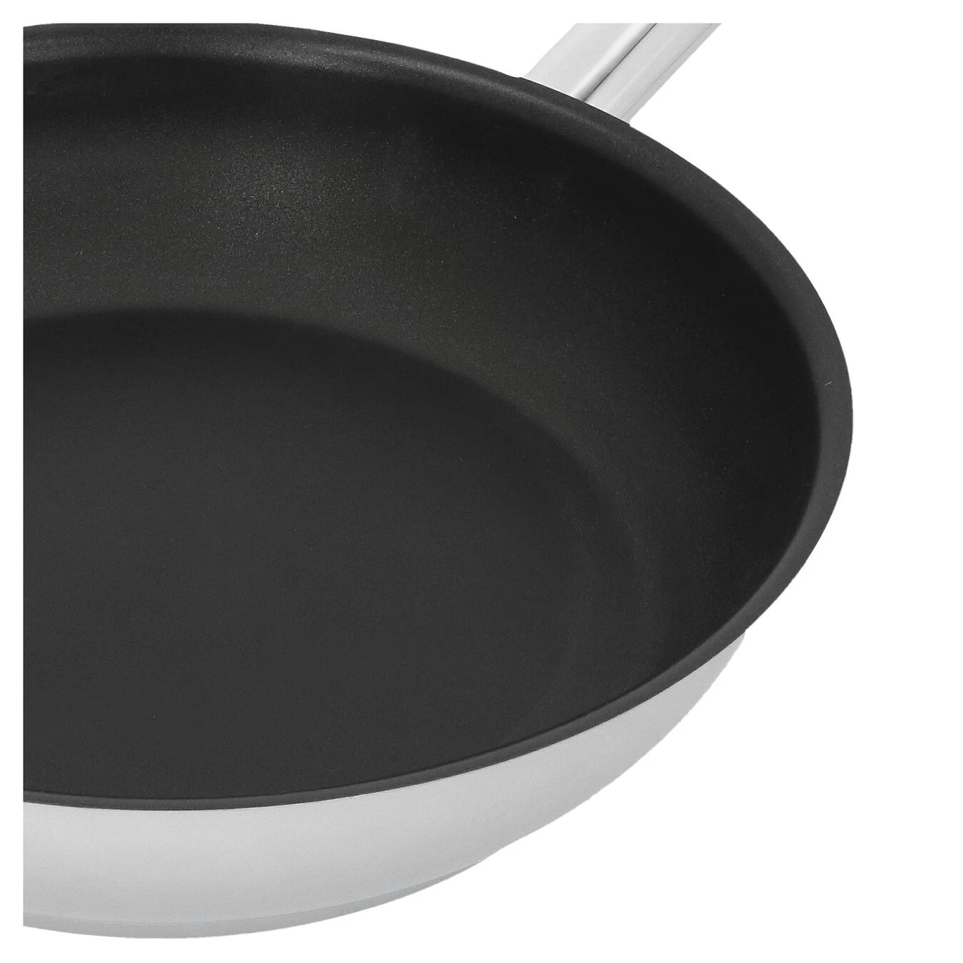 Nella padella Restoglide di Demeyere si possono friggere delicatamente vari tipi di alimenti. Cucinare piatti a base di uova, frittelle e piatti a base di pesce sarà sempre un successo grazie alla base a sandwich a più strati con anima in alluminio, che garantisce una distribuzione ottimale del calore su tutto il fondo della padella. Il fondo della padella della serie Restoglide è costituito da acciaio inossidabile e alluminio, e offre molteplici vantaggi in una sola volta: Oltre alla distribuzione ideale e alla ritenzione del calore, la padella Demeyere è facile da pulire e resistente ai graffi. La pentola è adatta anche per l’uso sui piani cottura a induzione, grazie allo strato esterno magnetico in acciaio inossidabile. La padella per sauté può inoltre essere utilizzata su tutti i tipi di fornelli convenzionali. Il manico ergonomico della pentola garantisce una presa confortevole e salda in ogni momento, poiché rimane freddo per tutto il tempo durante la cottura. Potrete cucinare deliziosi piatti per viziare i vostri amici e la vostra famiglia in questa padella di 28 cm di diametro e 5,7 cm di altezza.