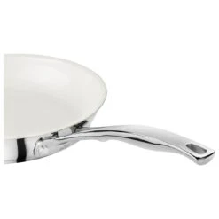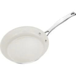 La padella con diametro di 24 cm della serie Madrid di BSF è ideale per cucinare delicatamente numerosi piatti, come uova, pesce e verdure. In eleganti tonalità bianche e argento, ha una base a sandwich compatibile con l’induzione, realizzata in alluminio e acciaio inox, che distribuisce il calore in modo uniforme su tutta la superficie. Il manico ergonomico in acciaio inox lucidato a specchio, che sottolinea il design elegante, garantisce un utilizzo confortevole. La padella è dotata del rivestimento antiaderente Ceraforce® , privo di PFOA e realizzato in ceramica di alta qualità. Questo rivestimento ha una resistenza particolarmente elevata all’abrasione e ai graffi e può essere pulito in un attimo dopo la cottura. Offre inoltre eccellenti proprietà antiaderenti, che garantiscono che il cibo non si attacchi. La padella della serie Madrid di BSF può essere utilizzata su tutti i tipi di piani di cottura, compresi quelli a induzione. Con questa versatile alleata in cucina, potrai stupire i tuoi ospiti con deliziosi piatti in padella.