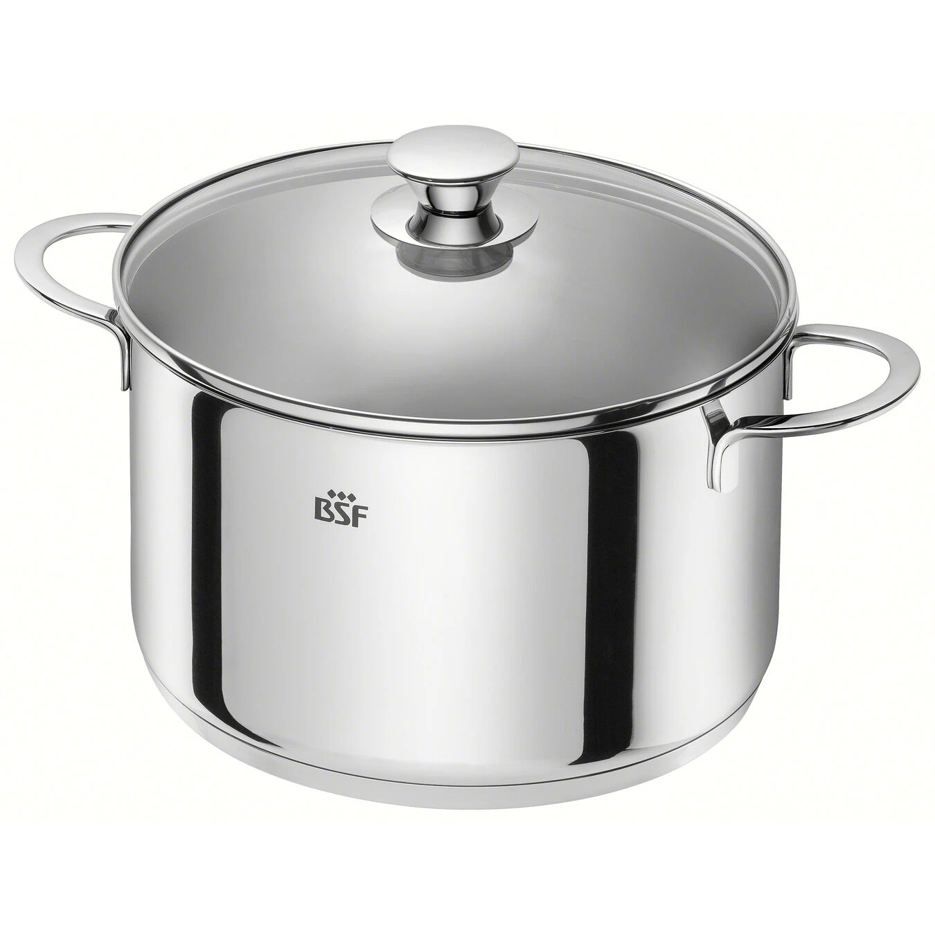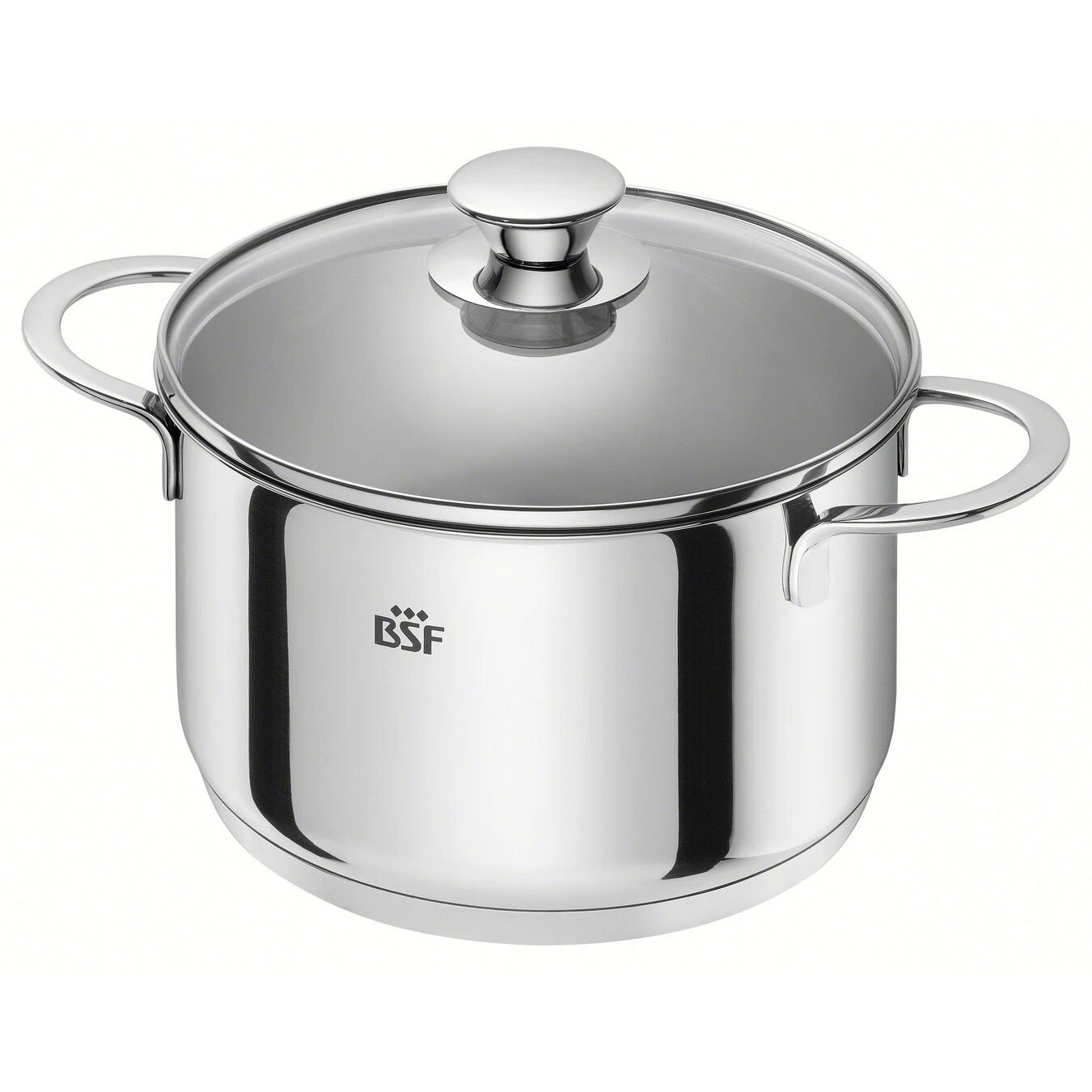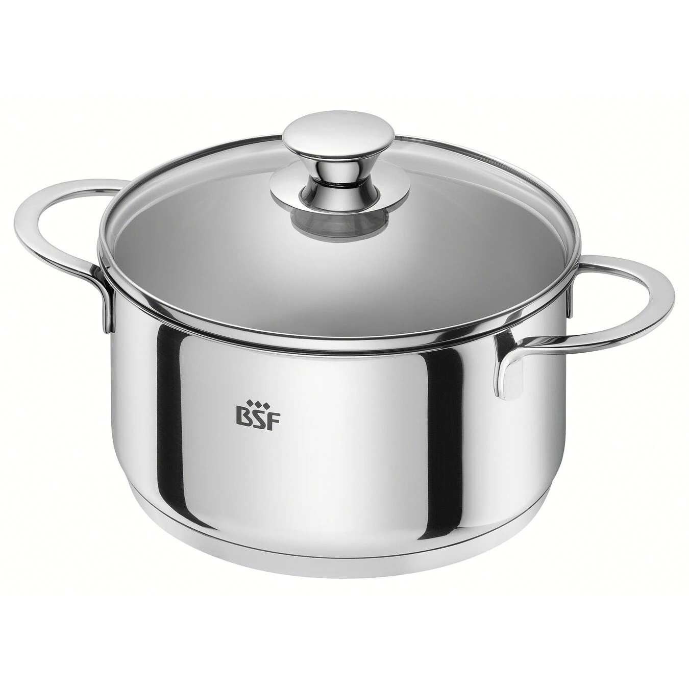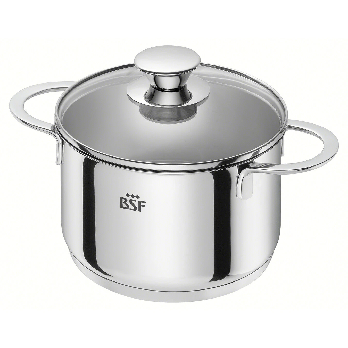 Il set di pentole di BSF può essere utilizzato su qualsiasi piastra elettrica e anche su piani cottura a induzione. Rende facile cucinare menù completi tenendo sempre d’occhio il cibo grazie ai coperchi di vetro.