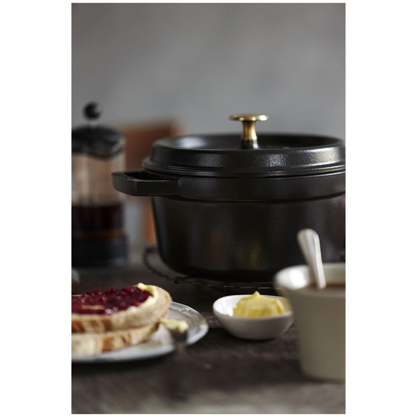 Una cocotte Staub può essere utilizzata per preparare una grande varietà di stufati e arrosti. Questa casseruola in ghisa nera trattiene il calore all’interno, in modo tale da utilizzare meno energia durante la cottura, e ha una capacità di 1,7 L un’altezza di 13 cm e un diametro alla base di 18 cm. La parola “coccotte” è francese. L’eccezionale capacità di trattenere e distribuire il calore è solo uno dei vantaggi della cottura in questa casseruola francese in ghisa. La speciale smaltatura di colore nero opaco intensifica ulteriormente tale capacità , creando le condizioni perfette per stufare e cuocere a fuoco lento. La smaltatura è utilizzata anche sulla parte esterna della casseruola per regolare il calore e distribuirlo uniformemente su tutta la pietanza. La ghisa è nota inoltre per la sua robustezza, pertanto questa pentola durerà per molti anni. La pentola è anche facile da pulire: può essere nuovamente riscaldata con un po’ d’acqua e del detersivo, per facilitare la rimozione dei residui di cibo dalla superficie interna. Utilizzate questa eccezionale cocotte per preparare piatti deliziosi per amici, parenti e ospiti.