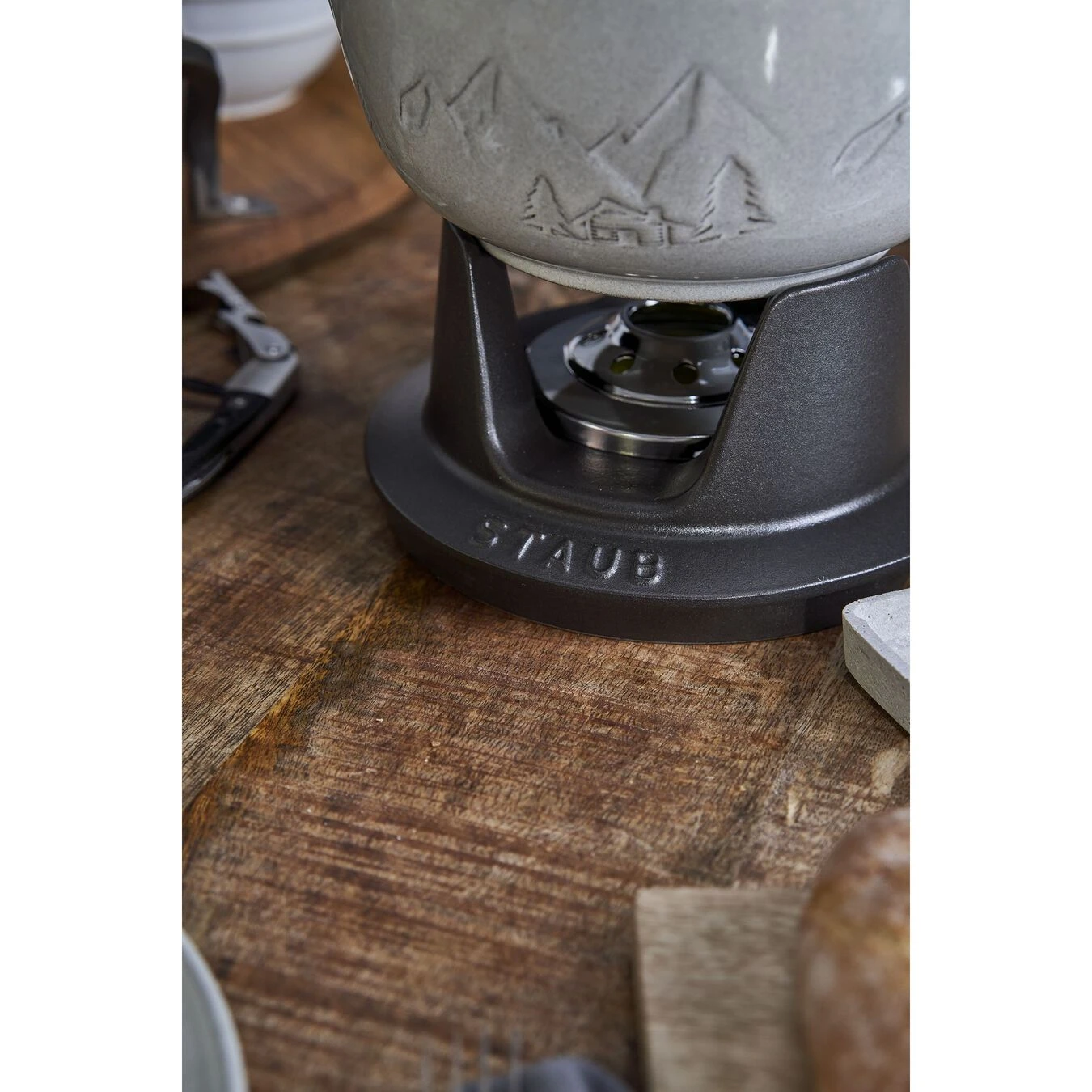 Il set da fonduta STAUB in ghisa smaltata ti permette di preparare deliziose fondute sul piano cottura o direttamente a tavola. Con un diametro di 20 cm e una capacità di 2,35 litri, ha le dimensioni ideali per sei persone. Il set è composto da una pentola da fonduta, un paraspruzzi removibile che funge anche da appoggio per le forchette, un réchaud e sei apposite forchette con codice colore per evitare confusione tra i commensali. Presenta manici ergonomici e potrai risparmiare spazio quando conservi il set posizionando il fornello all’interno della pentola. Oltre a rendere questo set molto durevole, la ghisa garantisce anche una distribuzione ottimale del calore a tutta la pentola e mantiene gli ingredienti caldi a lungo. Il set può essere usato per tutti i tipi di fonduta: la tradizionale fonduta di formaggio svizzera servita con il pane, la bourguignonne con le sue diverse varietà di carne cotta nell’olio bollente o la fondue chinoise, che usa il brodo bollente per cuocere carne e verdure e può essere facilmente trasformata in un piatto vegetariano. E naturalmente non può mancare la fonduta di cioccolato, per concludere in bellezza una cena in compagnia. Qualunque sia la tua preferita, la fonduta è la pietanza perfetta per le lunghe serate invernali. Per molte persone è il tipico pasto della vigilia di Capodanno. La nostra edizione speciale “mountain pattern” color tartufo bianco con il suo motivo di un paesaggio montano innevato riporta alla memoria le vacanze sulla neve e dona un tocco speciale alla tua tavola delle feste.