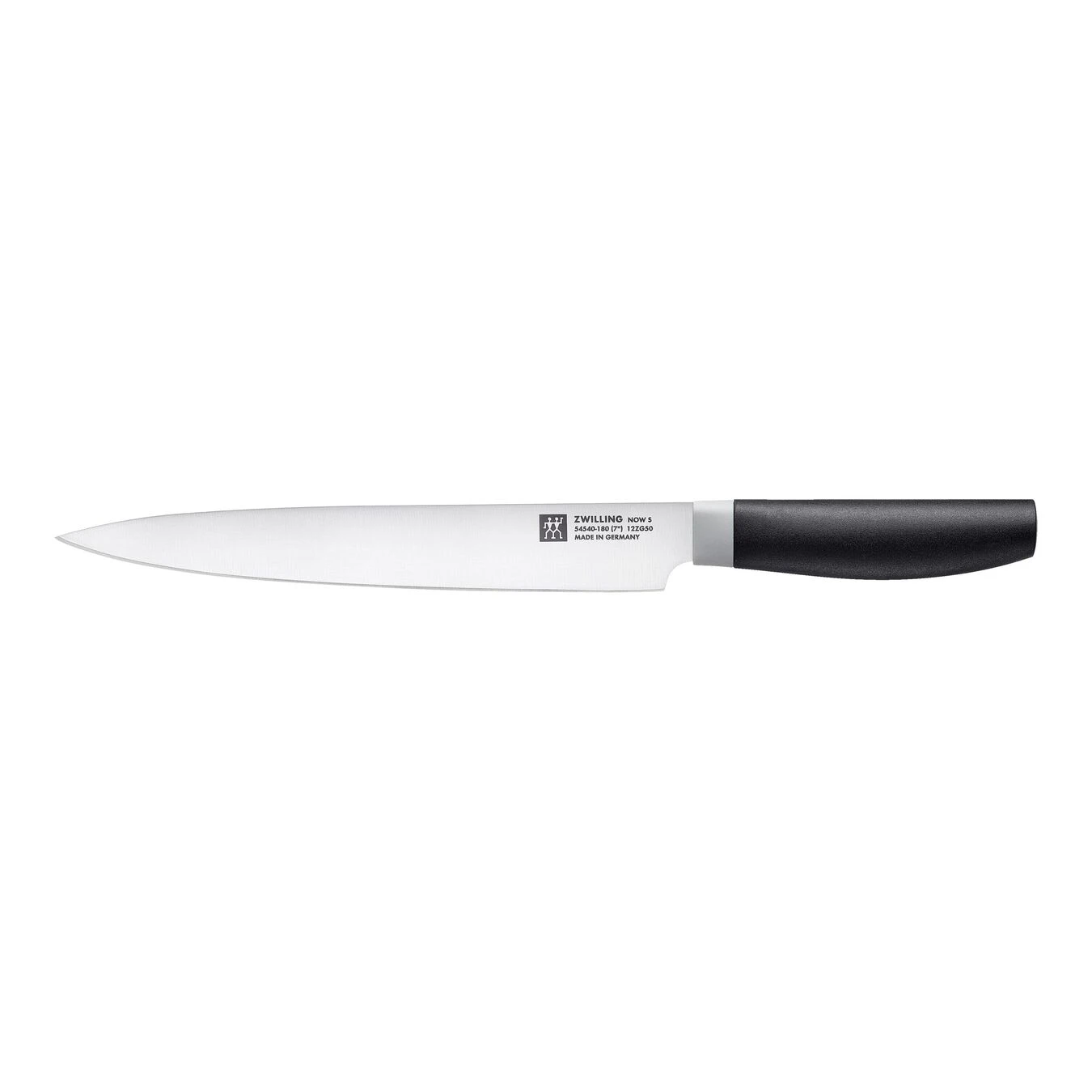 Taglia, con precisione. Facile, con un coltello universale da carne in nero, della linea NOW S di ZWILLING. Con una lama di 18 cm, temprata nel ghiaccio grazie alla tecnologia FRIODUR e realizzata con l’acciaio inossidabile speciale, è naturalmente resistente alla corrosione, flessibile e durerà molto a lungo. Questo coltello da carne non taglia solo la carne cruda o già cotta, ma affetta anche le cotolette e l’arrosto della festa, taglia il pollame senza fatica e puoi anche usarlo per preparare il pesce. Ma non abbiamo certo dimenticato lo stile: il famoso duo di designer milanesi Matteo Thun e Antonio Rodriguez hanno creato per noi un’armoniosa palette tono su tono che dona un tocco di modernità senza tempo alla tua cucina. A cosa si sono ispirati per questo coltello da carne? Ma alla natura, ovviamente: mirtilli, uva nera e olive nere, ma anche cioccolato fondente, chicchi di cacao, melanzane… Il suo manico realizzato in plastica è anti-scivolo ed ergonomico, per facilitare anche le operazioni di taglio più complesse.