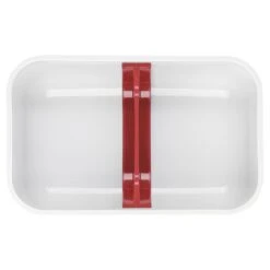 La scatola portapranzo nel design con tonalità rosse di tendenza è realizzata in plastica infrangibile senza BPA e, poiché è sottovuoto, è anche a prova di perdite e fa bella figura nella borsa da lavoro, nello zaino di scuola e nel cestino da picnic. Grazie al separatore, puoi suddividere la Bento Box in due scomparti per non mescolare i cibi. Dopo l’uso, il portasnack lavabile in lavastoviglie può essere pulito in modo semplice e veloce.