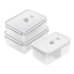 Vorresti gustare alimenti sempre freschi? Allora non puoi farti scappare questo set ZWILLING FRESH &SAVE. Ecco il tuo trio freschezza: piatto gratin sottovuoto in vetro, compatibile con microonde e lavastoviglie e utilizzabile anche per il congelamento sicuro; contenitore da frigo sottovuoto in vetro, da utilizzare per conservare formaggi, salumi o frutta e verdura (bello anche per servire in tavola); lunch box extra leggera e infrangibile, adatta anche per lunghi viaggi. Scuola, sport, lavoro: non c’è quasi nessun luogo in cui non si possa godere della freschezza to-go con la propria lunch box di plastica semitrasparente. Tutte e tre i contenitori sono sottovuoto. In questo modo gli alimenti si mantengono freschi fino a cinque volte più a lungo rispetto alla conservazione tradizionale.