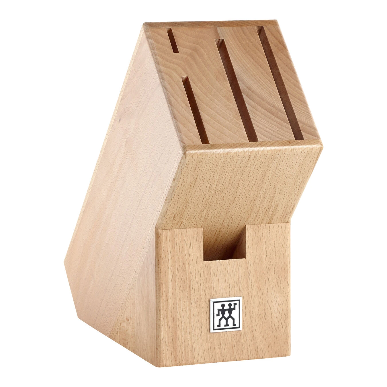 Con il ceppo di coltelli da 5 pezzi della linea Gourmet di ZWILLING otterrai un set completo di coltelli da cucina con delle lame realizzate con un acciaio speciale. Le lame hanno subito un processo di indurimento con ghiaccio, grazie al quale i coltelli diventano incredibilmente robusti, longevi e resistenti alla corrosione. Il manico nero in plastica è ergonomico e garantisce una presa confortevole. Il ceppo di coltelli in legno di faggio dotato di logo ZWILLING non solo è un elemento di attrazione in cucina, ma offre anche un luogo dove conservare i tuoi coltelli da cucina, proteggendo adeguatamente la loro lama. Il ceppo di coltelli include uno spelucchino (lama di 10 cm), un coltello da chef (lama di 20 cm), un coltello da chef modello cinese (18 cm) e una mannaia (lama di 15 cm). Con questi coltelli professionali cucinare per i tuoi cari sarà il doppio più divertente!